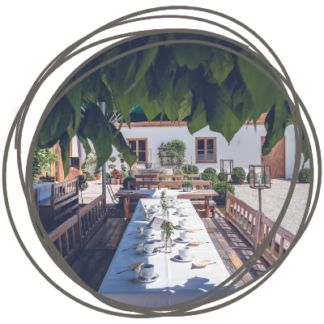 Ein Platz an der Sonne auf unserer Terrasse direkt vorm Haus oder unter den schattigen Platanen neben dem plätschernden Hofbrunnen wartet schon auf Dich…